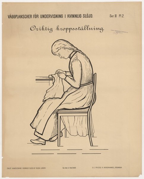 42010 - Hulda Lundine: Väggplanscher för undervisning i kvinnlig slöjd III,2: Oriktig kropsställning