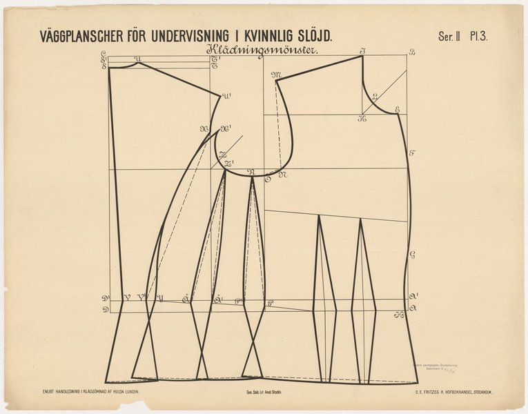 42008 - Hulda Lundine: Väggplanscher för undervisning i kvinnlig slöjd II,3: Klädningsmönster