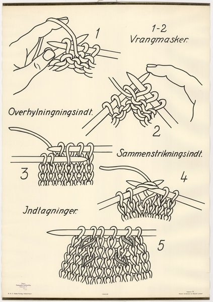 42023 - Karen Andersens håndarbejdstavler 13: Vrangmasker, overhylningningsindt., sammenstrikningsindt. og indtagninger.
