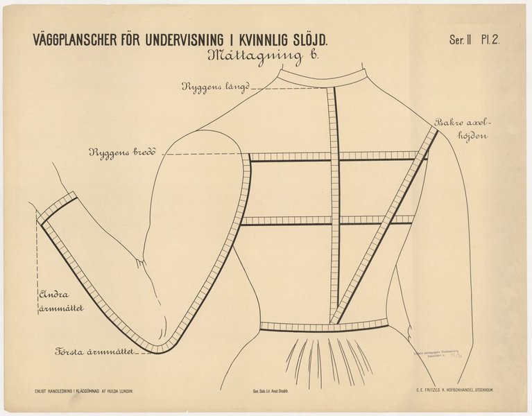 42007 - Hulda Lundine: Väggplanscher för undervisning i kvinnlig slöjd II,2: Måttagning b