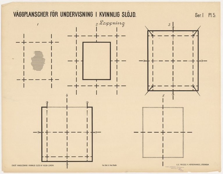42005 - Hulda Lundine: Väggplanscher för undervisning i kvinnlig slöjd I,5: Lappning