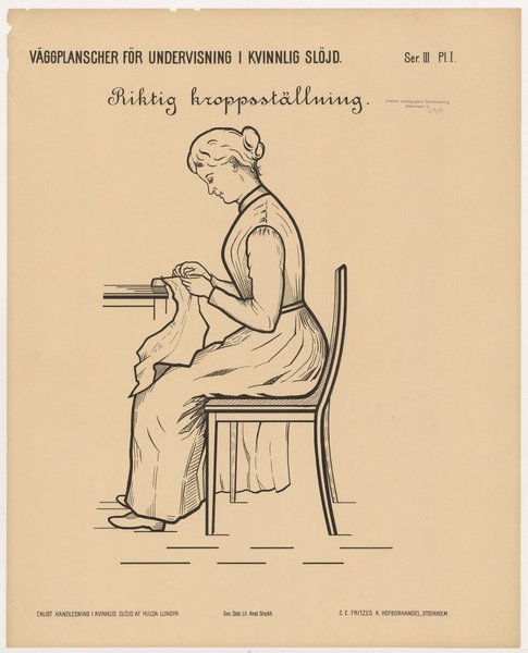 42009 - Hulda Lundine: Väggplanscher för undervisning i kvinnlig slöjd III,1: Riktig kroppsställning