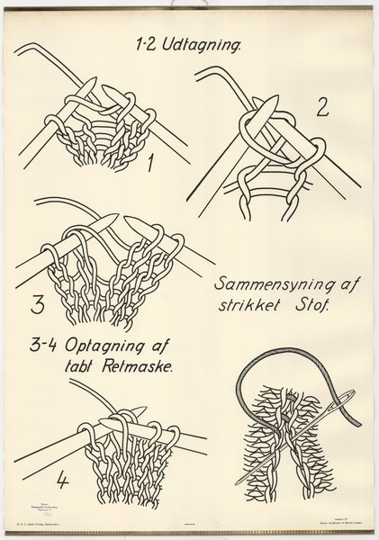 42024 - Karen Andersens håndarbejdstavler 14: Udtagning, optagning af tabt retmaske og sammensyning af strikket stof.