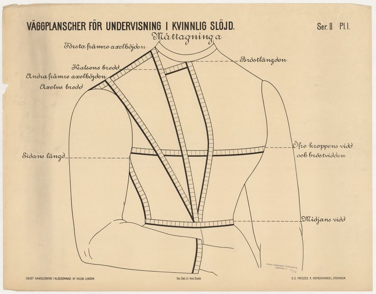 42006 - Hulda Lundine: Väggplanscher för undervisning i kvinnlig slöjd II,1: Måttagning a