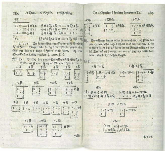 I Madsen-Vorgod og Pinholts Regnebogen fra 1907 findes fx. følgende regnestykker: